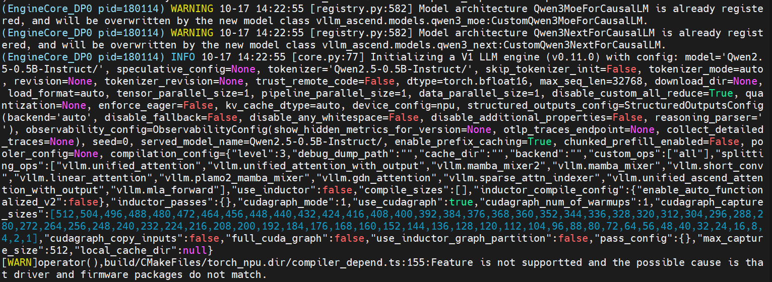 至此,完成了华为NPU服务器从驱动问题诊断、修复到vLLM框架部署尝试的完整过程。虽然在310P3显卡上由于硬件限制未能成功运行vLLM,但通过升级到支持的硬件和对应的驱动版本,为后续的深度学习框架部署奠定了基础。