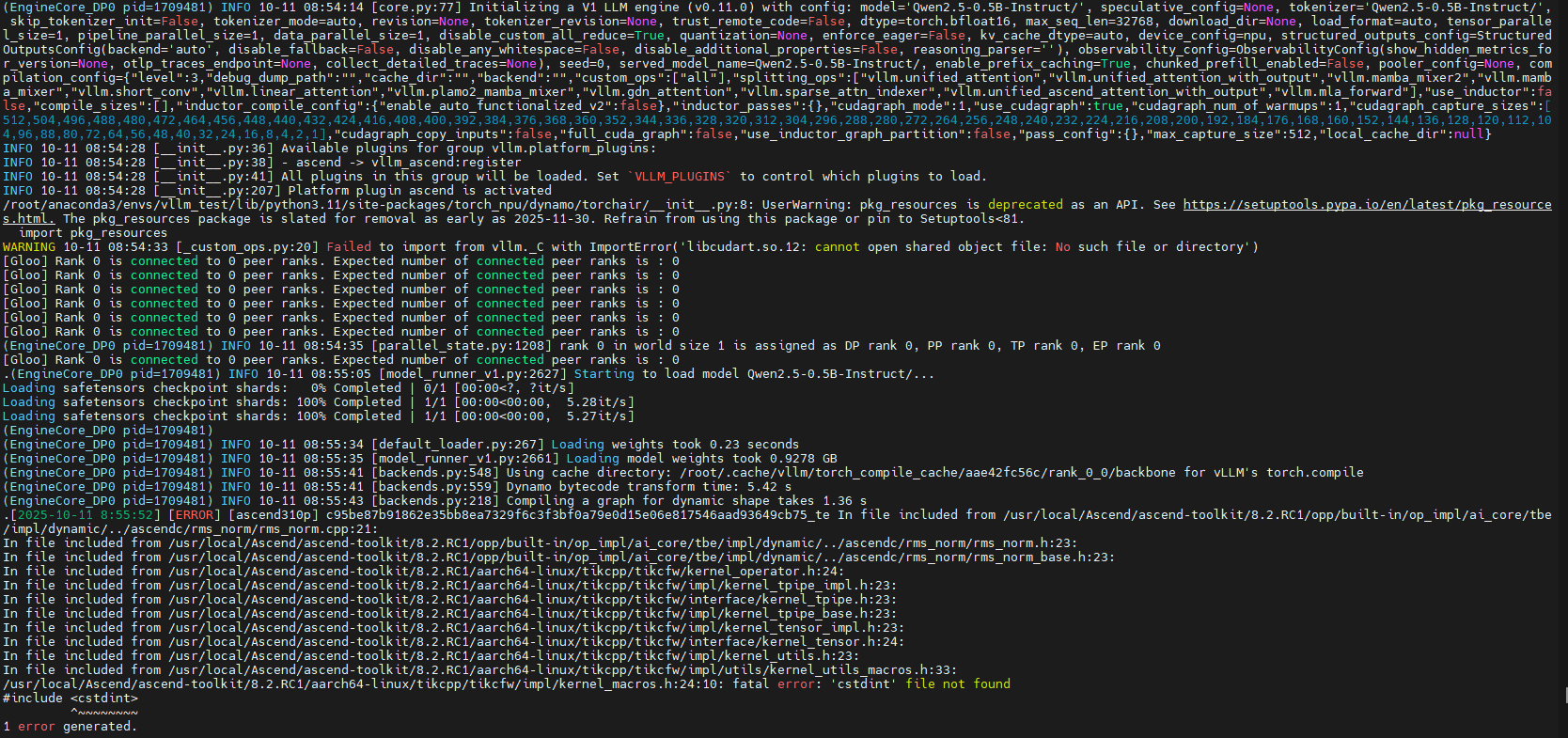 这是 CANN 工具包的 C++ 编译环境配置问题。CANN 的算子编译需要 C++ 标准库,但系统环境变量没有正确配置,导致编译器找不到 cstdint