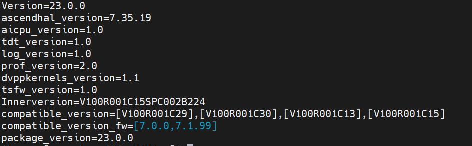 查看当前CANN版本,结果显示为23.0.0,确实不符合要求。