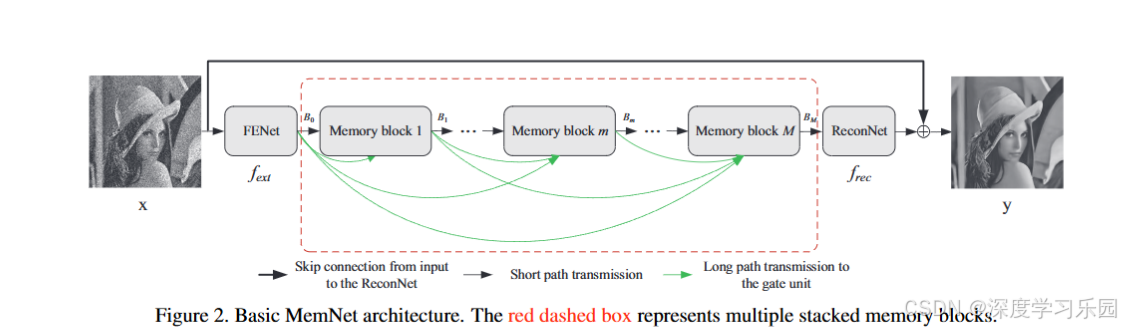 MemNet = "记忆块(短期×长期)" + "长程致密连接" + "轻量门控" + "多监督投票" + "残差重建":