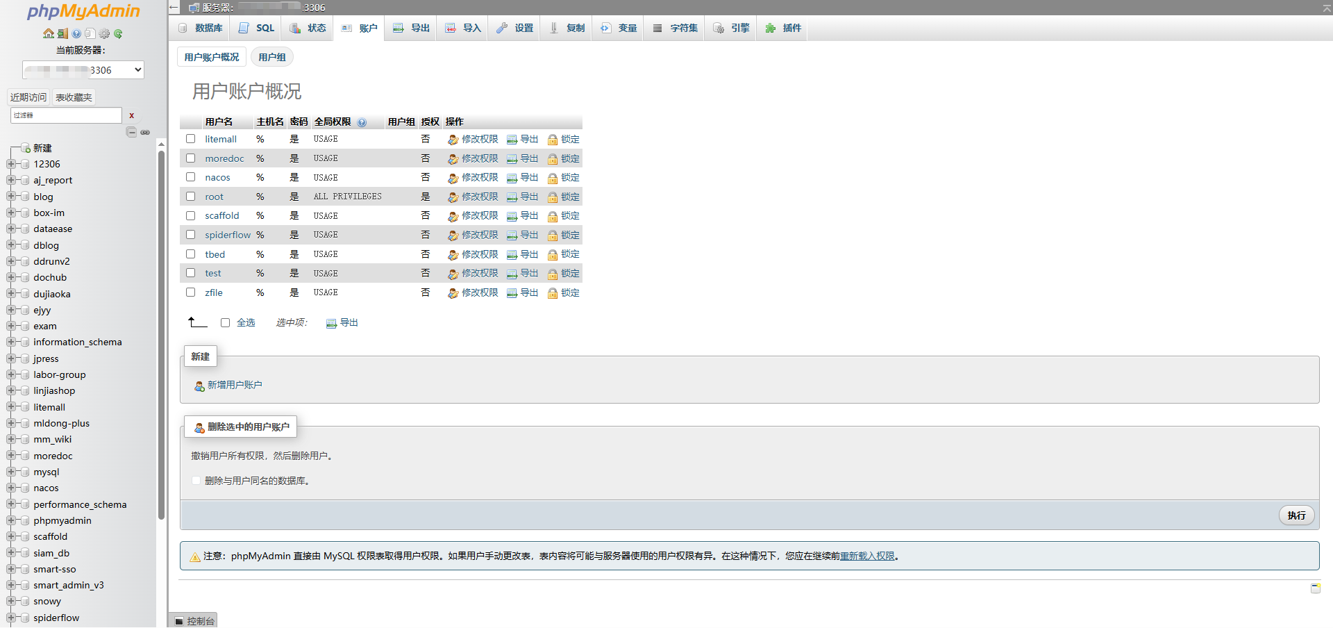 - 用户账户管控:可添加、编辑和移除 MySQL 用户账户,精细化分配操作权限