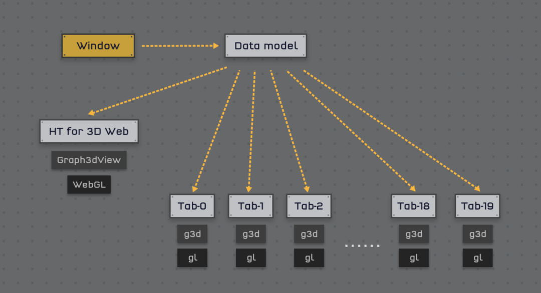 我们将所有的 Graph3dView 都绑定到一个 window.dataModel 上。具体可以参考下图: