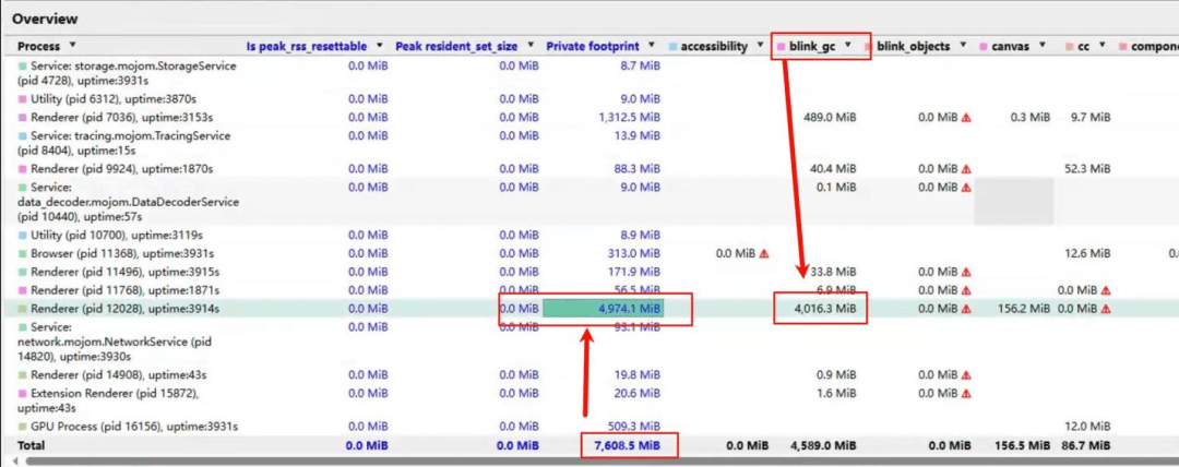 在本案例中,机器总内存高达 64GB,资源充裕,Chrome 判断无需迫切回收。为避免不必要的性能开销(一次完整的 GC 会消耗 CPU 资源),GC 选择推迟回收操作。因此,我们看到的 4GB 占用,实际上是 Oilpan GC 持有的一个较大的内存池,其中包含了活动对象和大量待回收的"垃圾"对象。只要这个内存池的大小趋于稳定,没有出现持续、无节制的增长,通常就不构成内存泄漏问题。