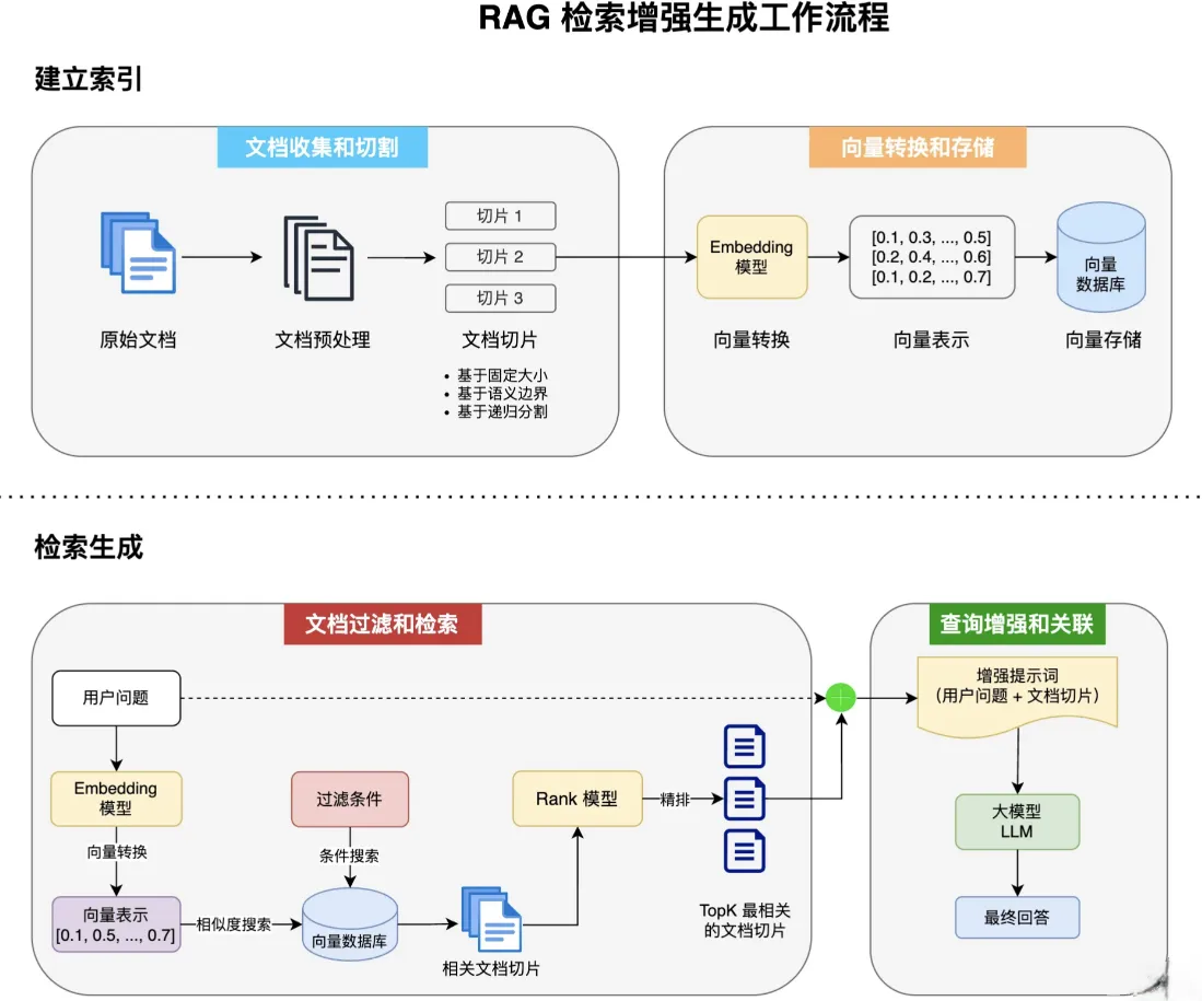 向量存储:将生成的向量和对应文本存入向量数据库,支持高效的相似性搜索