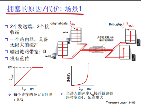 即使在缓存无限大、无丢包的理想条件下,链路带宽的有限性也会导致拥塞,进而引发吞吐量和延迟的双重问题。