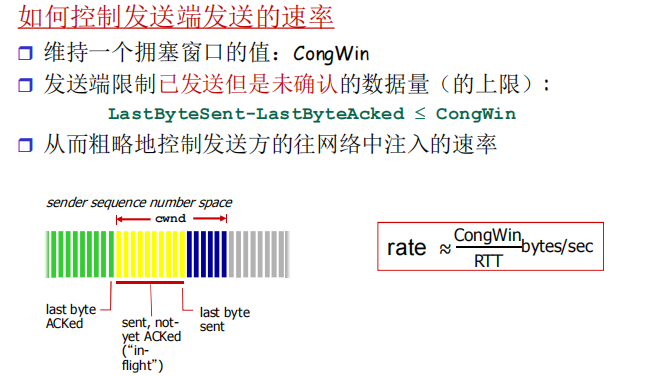 - 让发送方的发送速率适配网络的承载能力,避免过多源以过高速率发送数据引发或加剧拥塞;