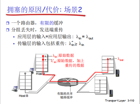 缓存溢出导致丢包 :由于路由器缓存有限,当传输层总输入速率