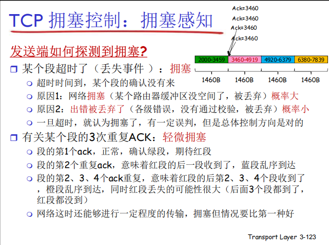 - 核心逻辑 :网络层不向运输层提供显式的拥塞反馈 ,端系统需通过观察网络行为 (如分组丢失、时延变化)间接推断拥塞。