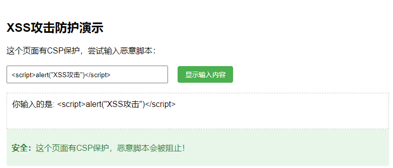 <p><strong>安全:</strong>这个页面有CSP保护,恶意脚本会被阻止!</p>