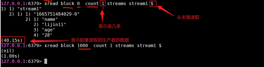 ## 表示从stream1中读取一条数据(0-0:表示起始位置start-end)