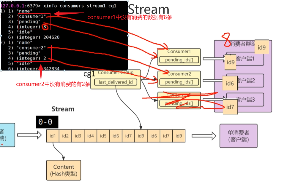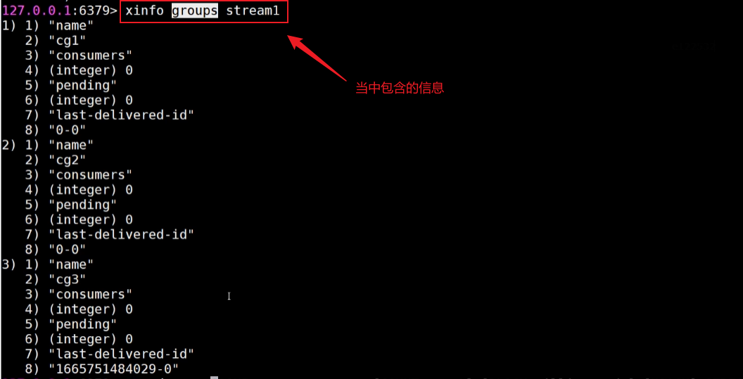##在Redis中针对stream1创建一个cg1群组:0-0:从头开始消费(就是一个通配的概念)