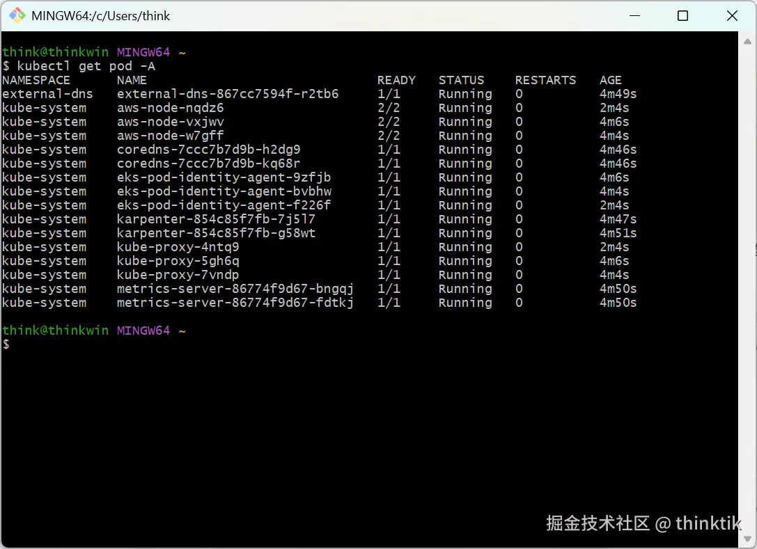 也可以从查看karpenter的pod运行情况