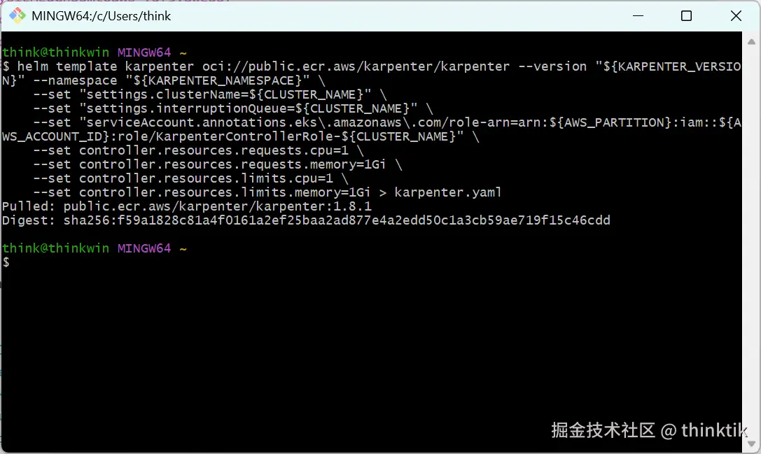 helm template karpenter oci://public.ecr.aws/karpenter/karpenter --version "${KARPENTER_VERSION}" --namespace "${KARPENTER_NAMESPACE}" \