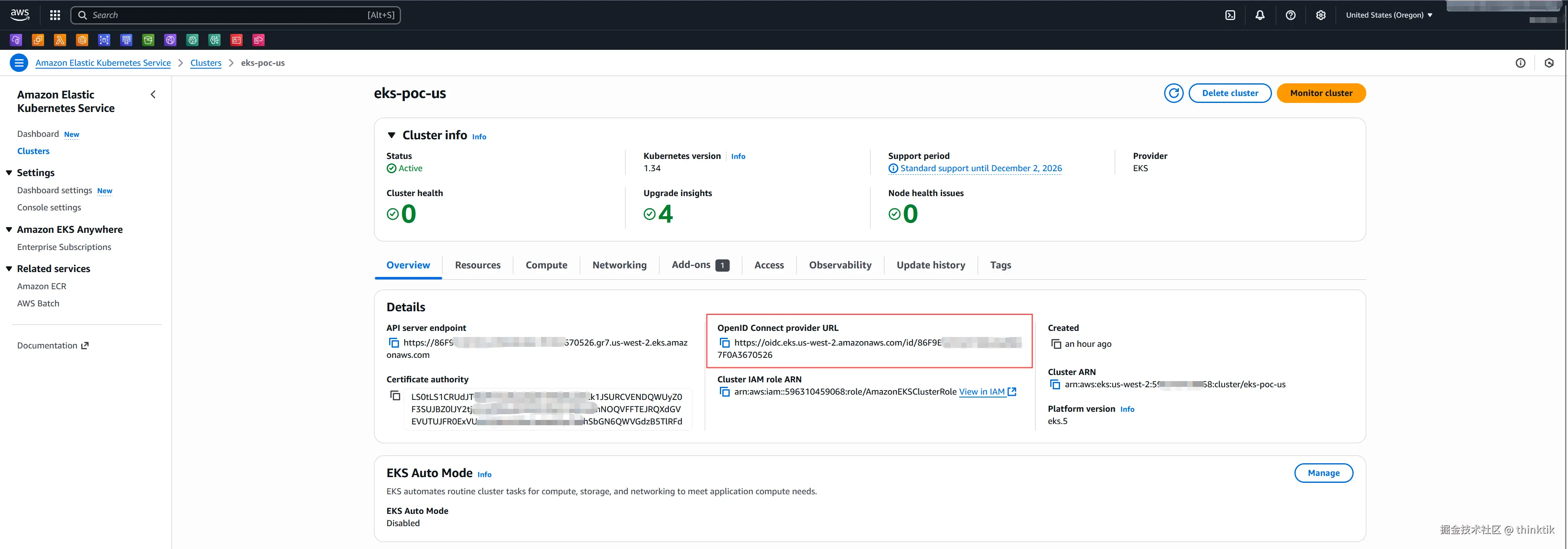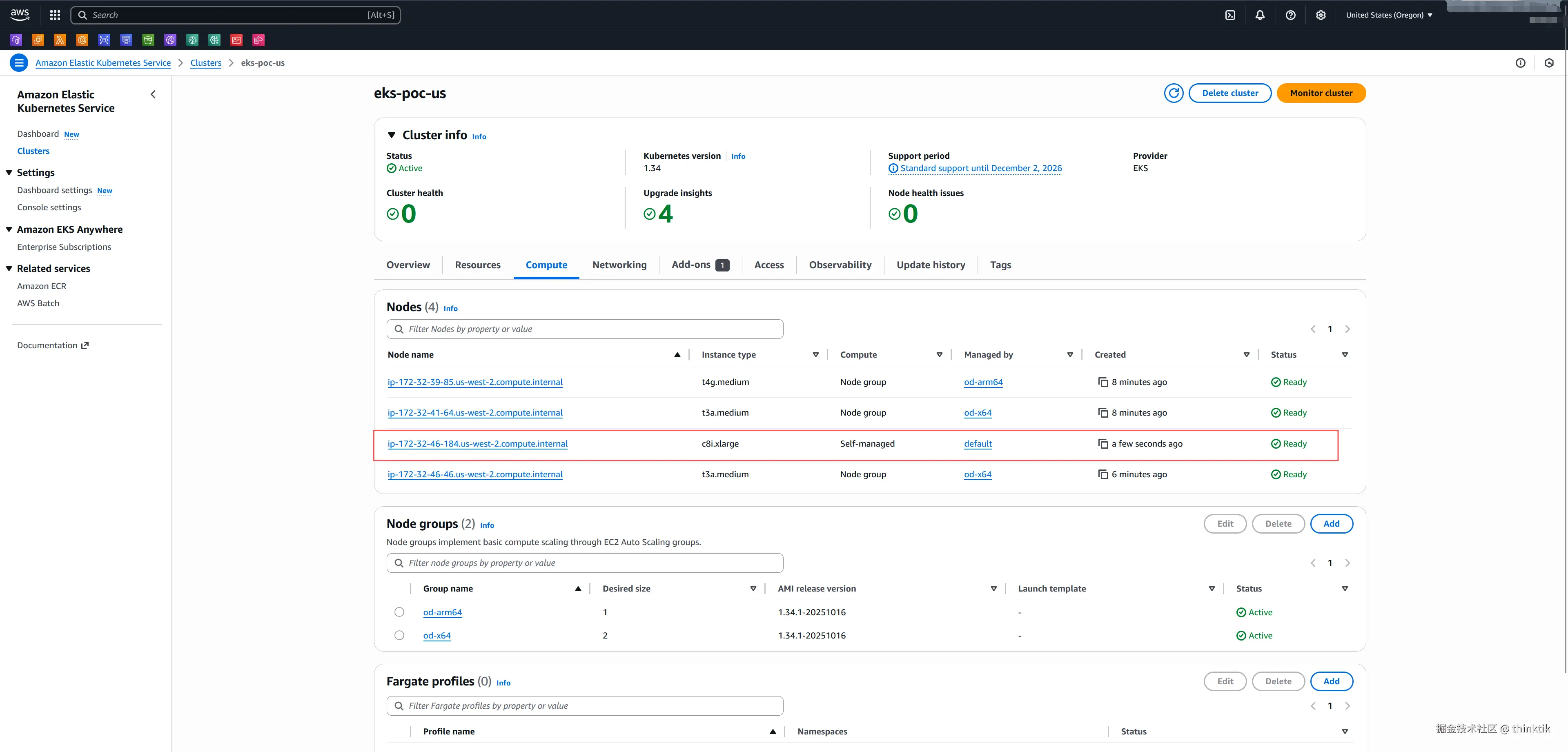 | AWS EKS | 1.34 | AWS(俄勒冈region) |