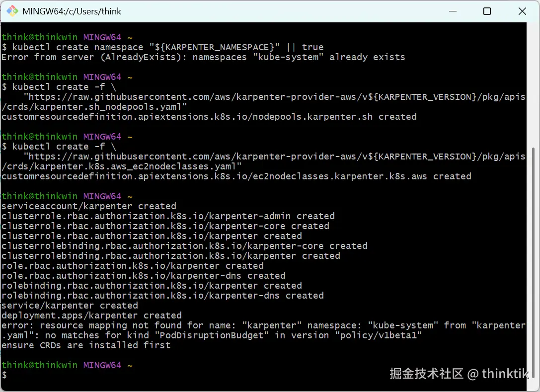 kubectl create namespace "${KARPENTER_NAMESPACE}" || true