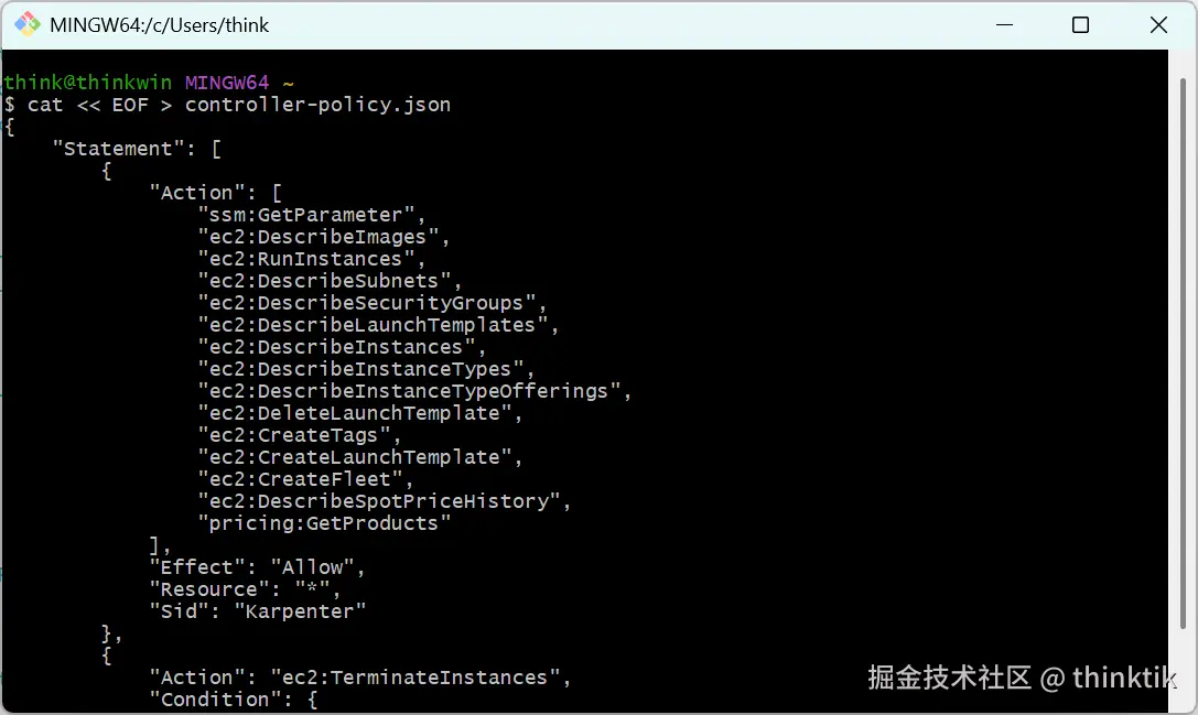 KarpenterControllerRole IAM Role 主要是给Karpenter 控制器自己用