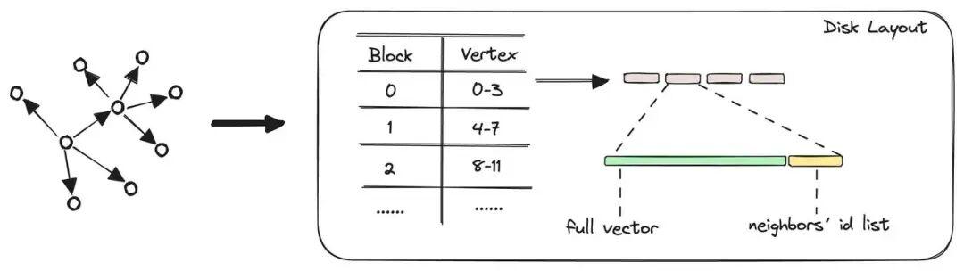 - 隐式重排:磁盘同扇区同时存放节点的邻居与其全精度向量数据,磁盘多路读取邻居的过程中顺便带上全精度向量,计算下一轮的邻居的同时也计算了本节点的精确距离。用精确距离做最终 Top-K 重排,召回更稳。