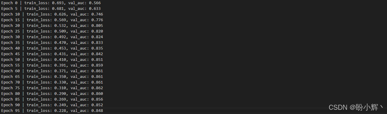 print("Epoch {:3d} | train_loss: {:.3f}, val_auc: {:.3f}".format(