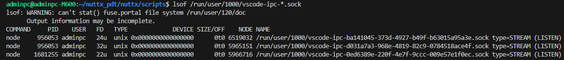 其实不管是 UID 1000,还是 UID 120,它们都有自己独立的 /run/user/UID 目录,但每个人只能访问自己的,所以 lsof 会对 /run/user/120 报 WARNING,因为当前登录用户是 UID 1000,如果想直接访问 120 目录,也是不行的,比如终端输入