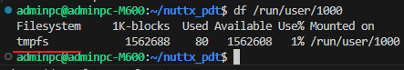 /run/user/1000/:存放在临时运行时目录 ,生命周期只在用户登录期间存在,存储位置在内存上,存放 socket,锁,D-Bus,IPC 等临时通信文件,终端输入df /run/user/1000