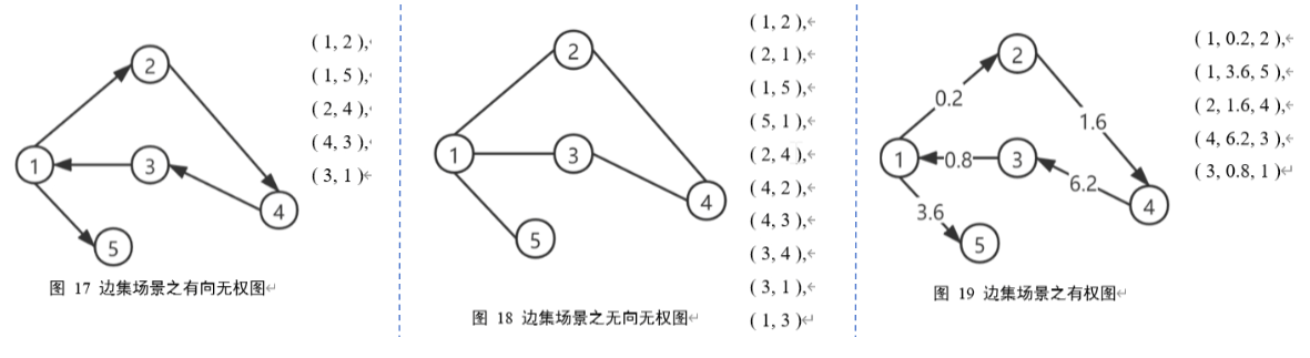 | 边集 | 用一个列表存储所有边,如 ( u , v ) (u, v) (u,v) 表示一条边 |