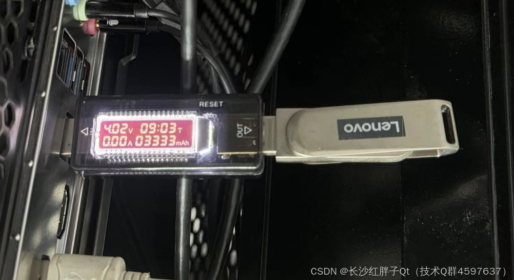 9.有USB插入看电压电流的,接入试一下,发现有4.9V,插入U盘就4.0了,插入无法识别的移动盘就是3.0~4.0之间来回跳动,是带不起确认,USB这块可能老化了,不可能一个U盘就掉了这么多,其他外设没接)。