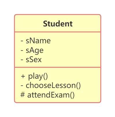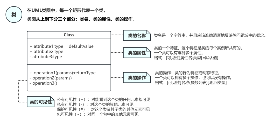 操作的可见性也是有+(公有)、-(私有),#(保护)和~(包内可见)四种。