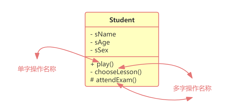 在UML中,和属性名的表示类似,单字的操作名小写;