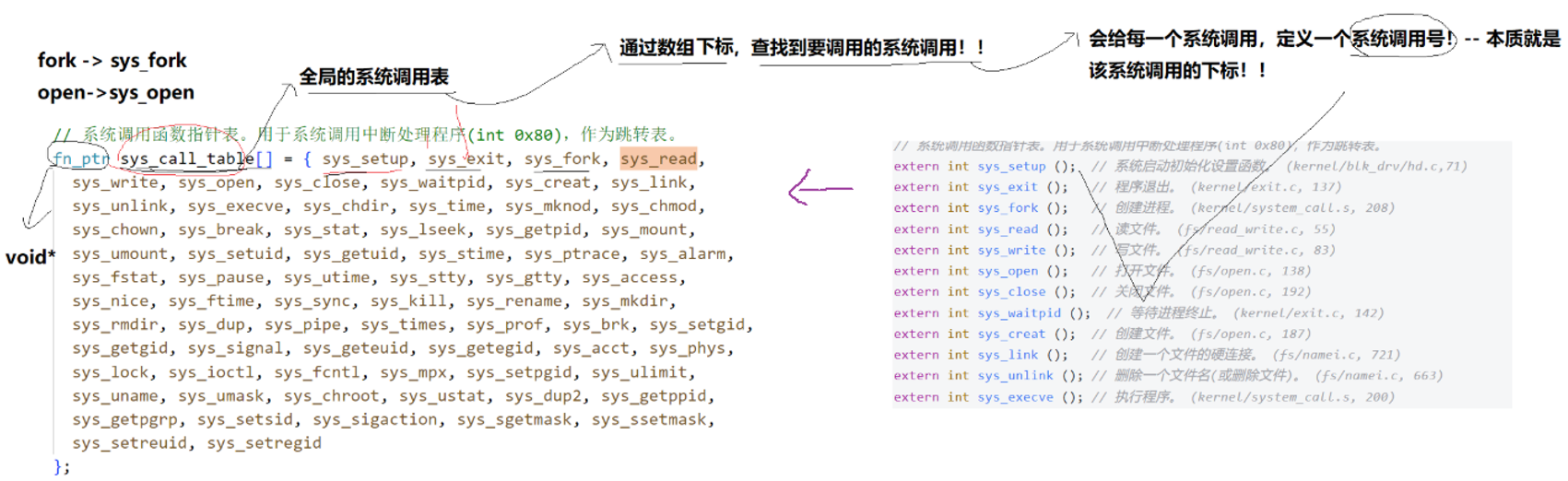 - 我们用的系统调用,我们只知道系统调用的名字啊!并不知道系统调用具体在哪里啊?