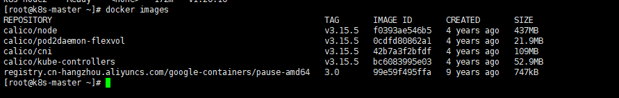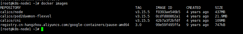 两台node节点上calico服务默认拉取的镜像都有如下: