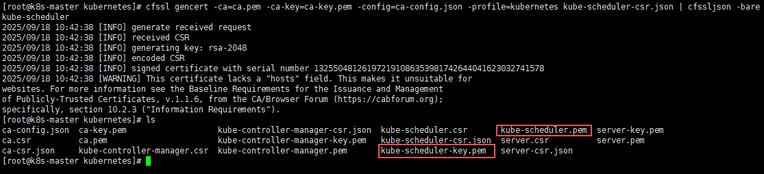 - [5.5.2 生成kube-scheduler证书](#5.5.2 生成kube-scheduler证书)