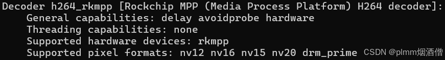 可以看到,解码器的输出支持 NV12 等色彩空间的 AVFrame,并且支持输出到 DRM Prime。