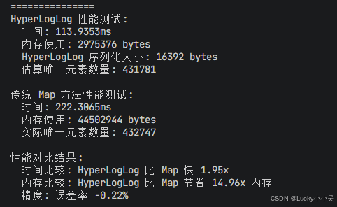 fmt.Printf(" 内存使用: %d bytes\n", hllMemory)