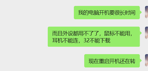 电脑鼠标接口失灵、stm32无法下载(外设接口问题,板子没问题,驱动也安装了,昨天还可以,今天就不行),蓝牙耳机无法连接,想着开机重新启动一下吧,结果开机时间N长了,那怎么办呢。