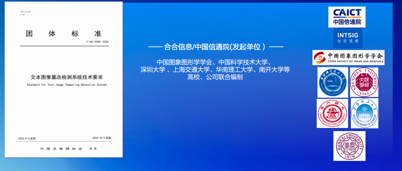 合合信息与中国信通院联合发起,携手中国图象图形学学会、中科大、上海交大等单位,共同编制《文档图像篡改检测标准》。标准制定是技术走向成熟的重要标志,合合信息不仅做产品,还参与行业规范的制定,这体现了技术领先者应有的责任感。