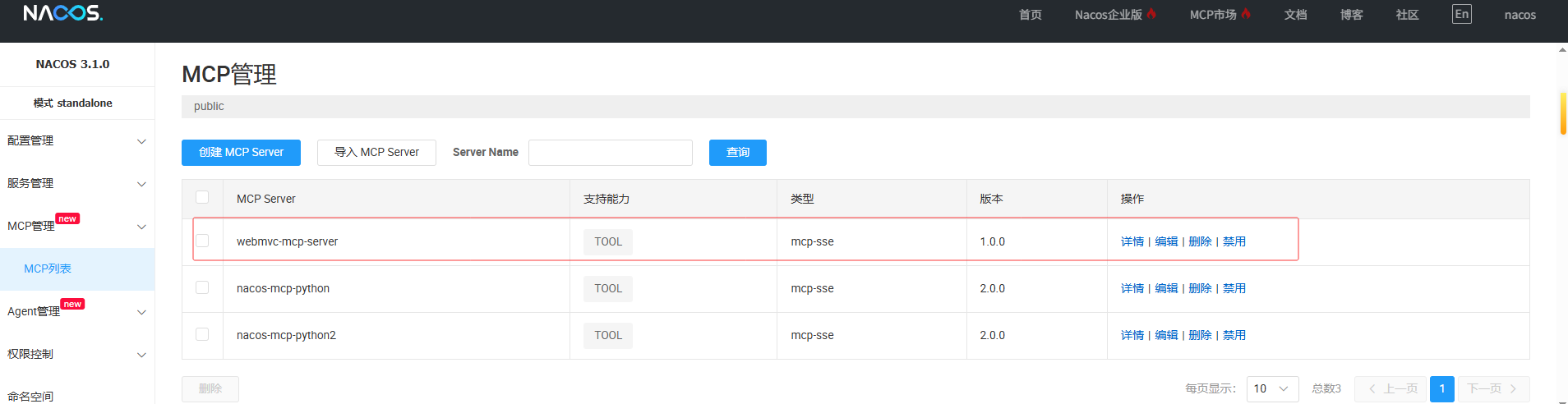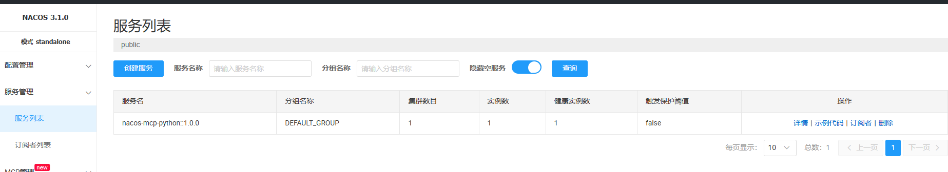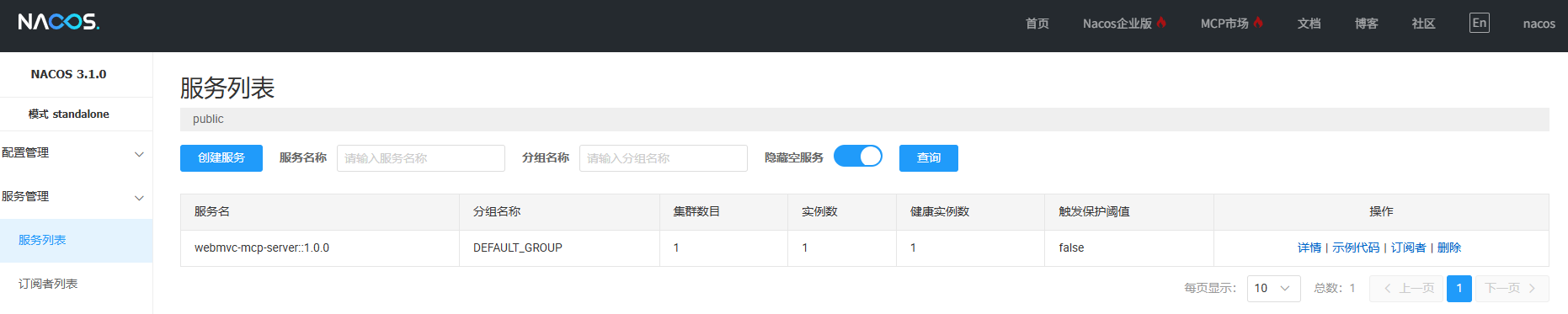 - 启动springboot服务没有报错后查看nacos是否注册MCP服务