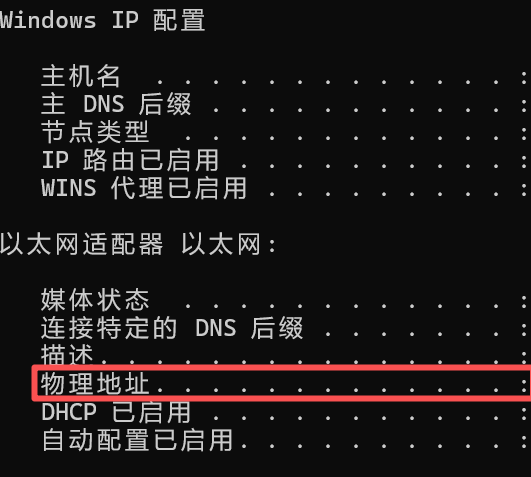 MAC地址是48比特,6个字节一般是由16进制数字加上冒号的形式来表示。
