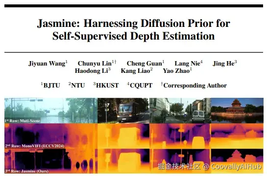 最近,一项名为 Jasmine 的研究给出了令人惊喜的答案------它首次将大名鼎鼎的Stable Diffusion(稳定扩散)模型 成功引入自监督单目深度估计领域,不仅训练时不依赖昂贵的深度标注数据,还在多个权威数据集上实现了最先进的性能表现,甚至在零样本泛化能力上超越了以往所有模型!