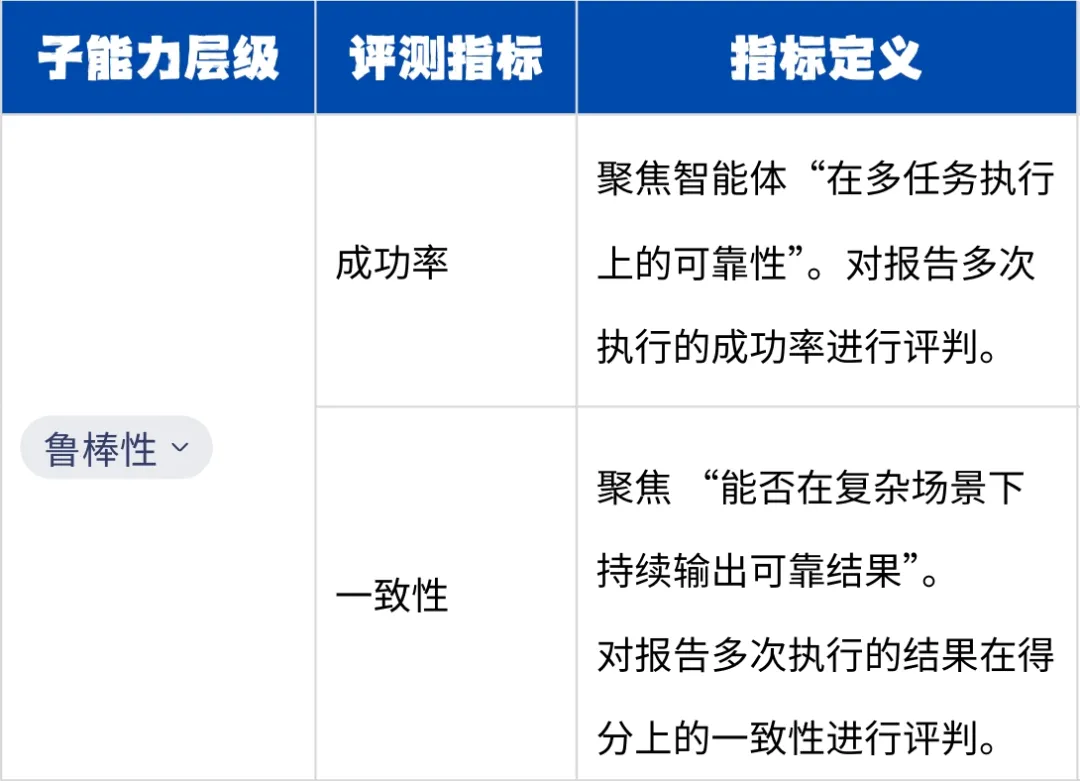 鲁棒性是智能体稳定运行的保障层,该维度可衡量数据智能体在多次、重复执行任务时的稳定性和结果一致性。