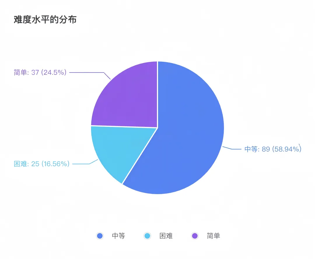 题目分为"简单","中等"以及"困难"三个级别,分布如下: