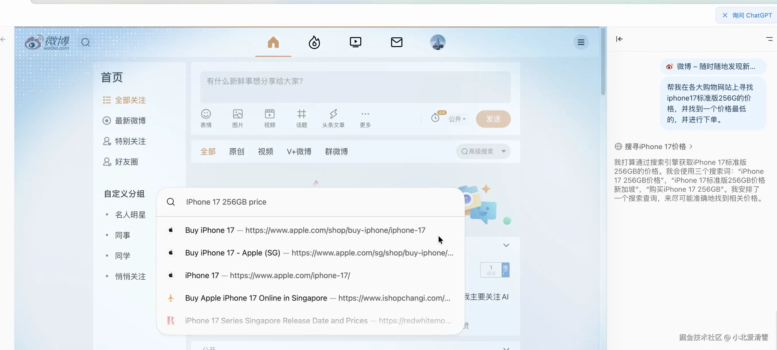 目前看起来还不错,能否进行一些复杂的操作呢?比如让它帮我对比各大平台的iPhone17的价格,然后选择最便宜的进行下单并购买。