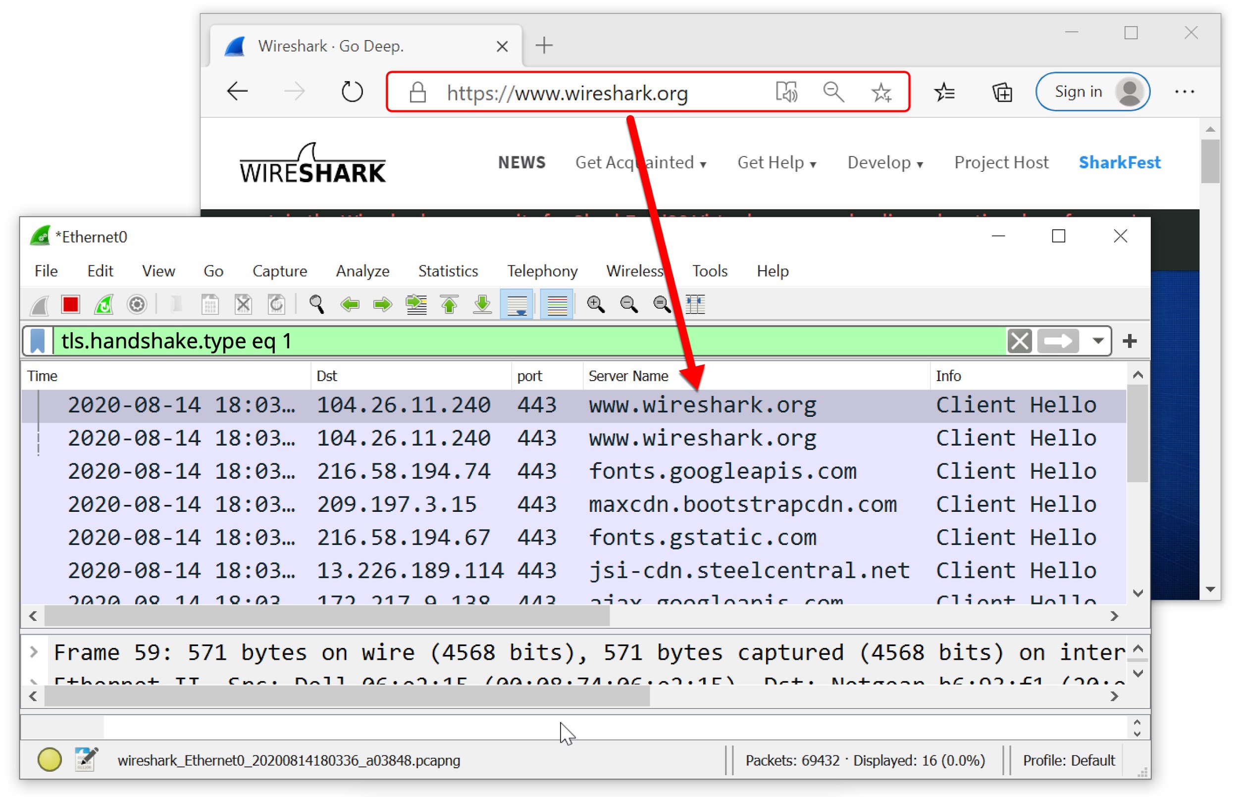 Wireshark HTTPS捕获界面示例