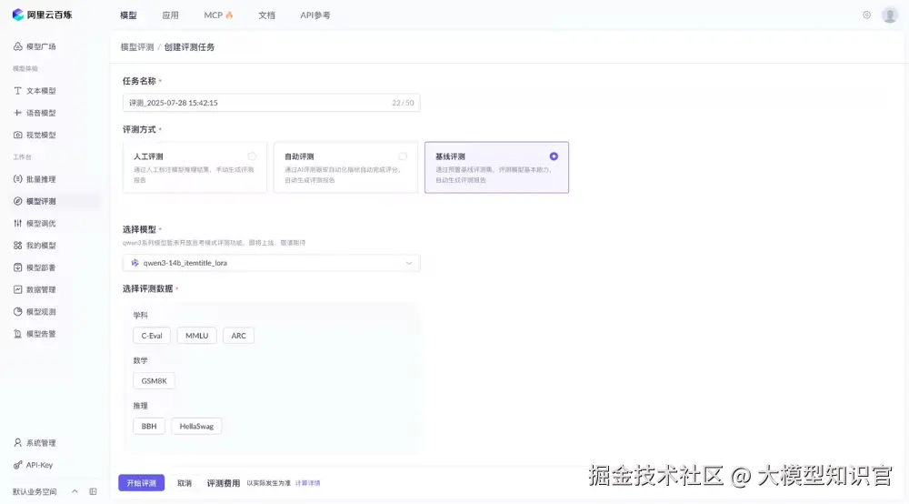 通过预置的算法来对模型的特定⽅向能⼒进⾏标准化评测。