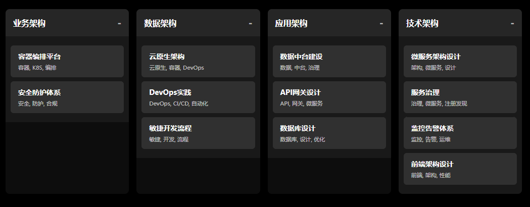 z: { name: '业务领域', levels: ['业务架构', '数据架构', '应用架构', '技术架构'] }