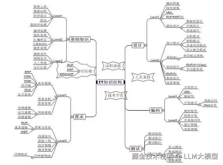 今天接着聊知识体系构建方面的话题。如果看过我前面知识体系相关文章可能知道,我常用的知识体系构建一般就是思维导图和知识矩阵图。思维导图单维度,而知识体系双维度。【大模型教程】