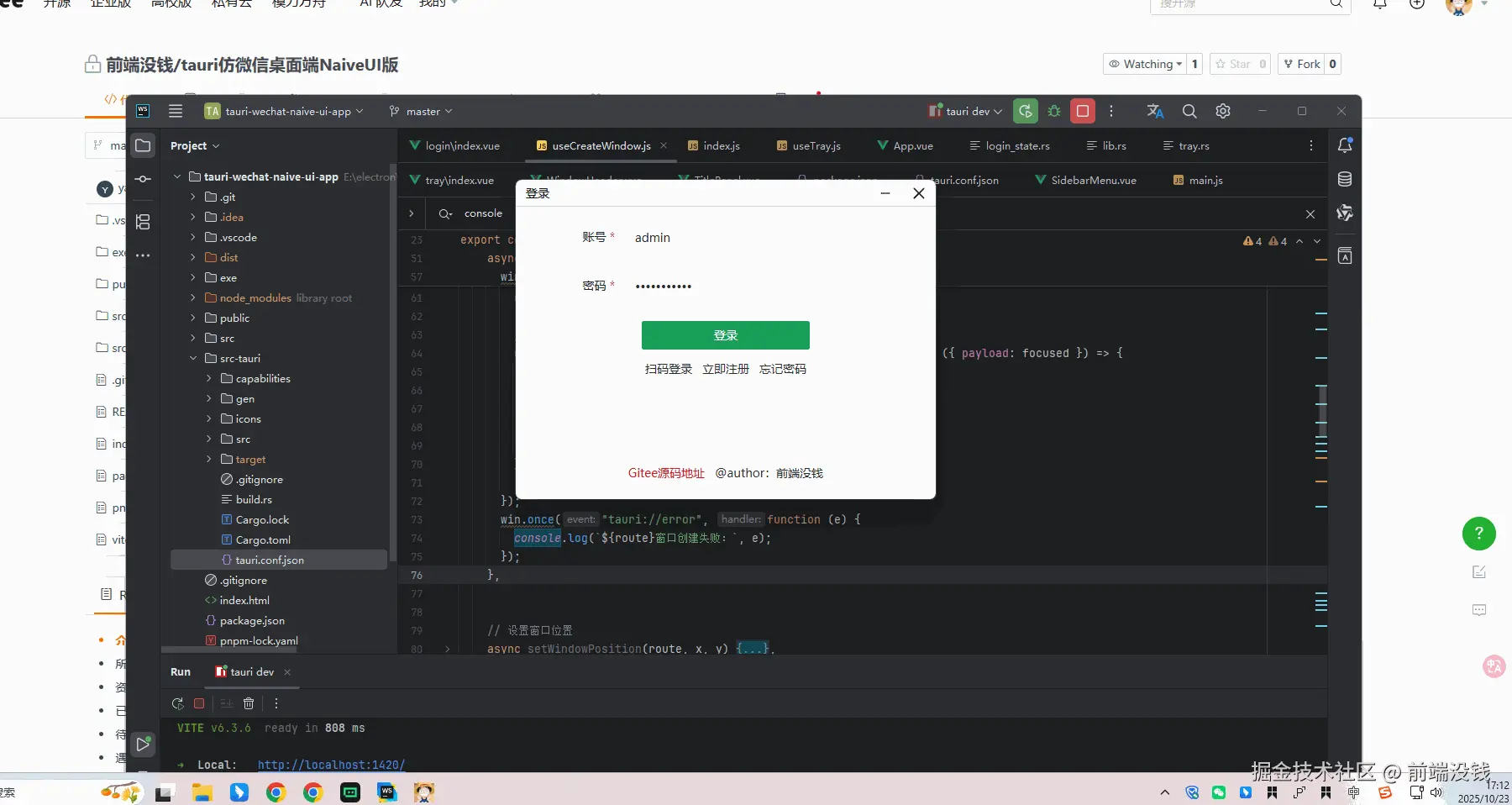 Tauri写桌面端应用太香了,我用Tauri仿写了微信,因为很多API都可以用JavaScript来写,所以我的整个项目95%都是用JavaScript来写各种API的,对前端同学非常友好。