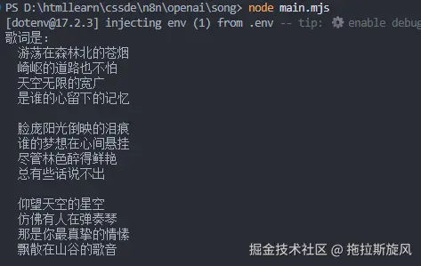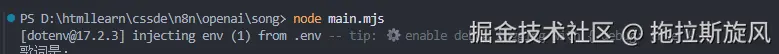 🔍在集成终端中输入:node main.mjs ,你将得到在prompt指令中想要得到的结果。