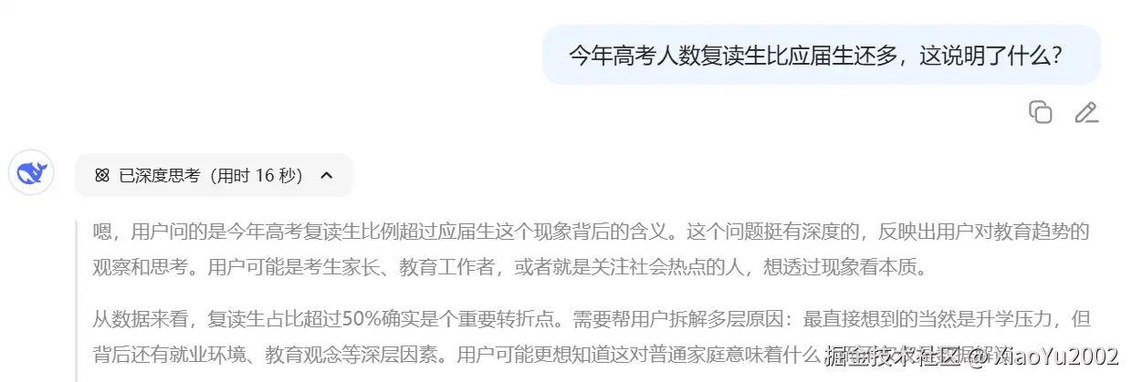 深度思考模式在一定程度上模拟了1.1.3小节说明的人脑全局规划,因此深度思考模式能在一定程度上获得精准提问的部分收益(这里不再提及具体收益,详见导言中 精准提问带来的价值 )。