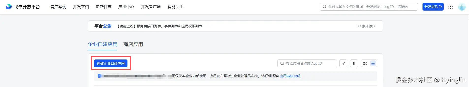 在飞书开放平台创建一个应用,个人用户创建企业自建应用。