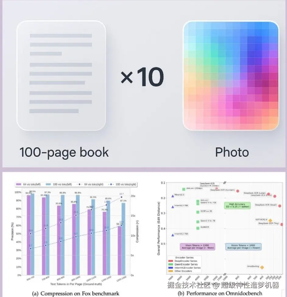 就在我们为文档处理模块的准确率和延迟焦头烂额时,DeepSeek 突然开源了 DeepSeek-OCR ------ 一个能将任意 PDF 或图像一键转为结构化 Markdown 的视觉语言模型。它不仅支持图表解析、文本定位,还能在 vLLM 架构下实现高并发文档吞吐。这本该是我们的福音,却意外揭开了另一个残酷现实:开源模型虽好,但集成、调度与成本控制,才是真正的生死线
